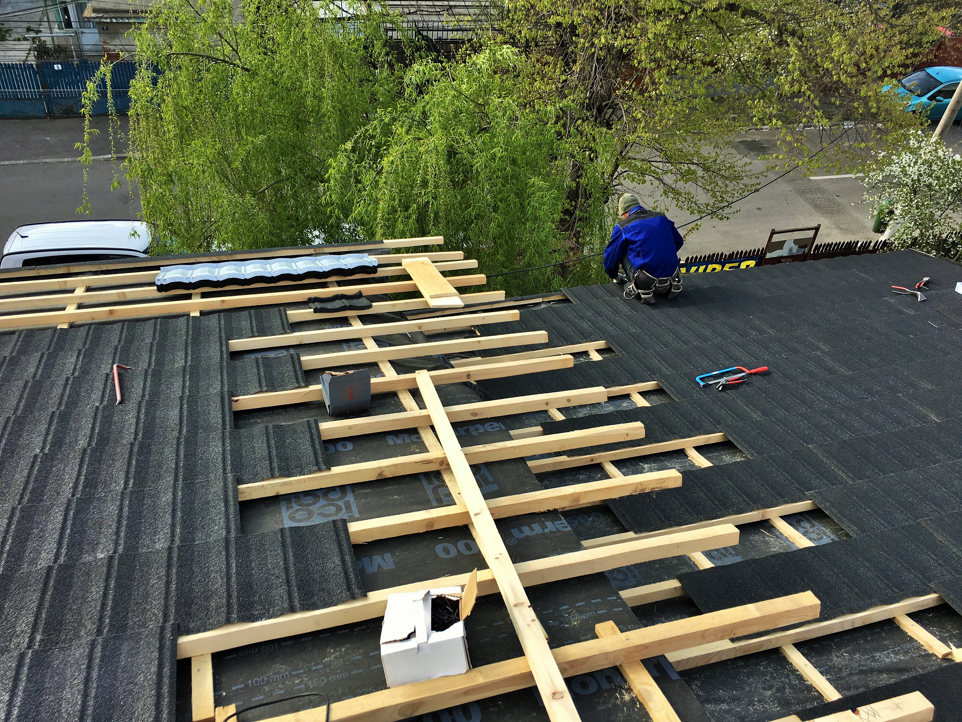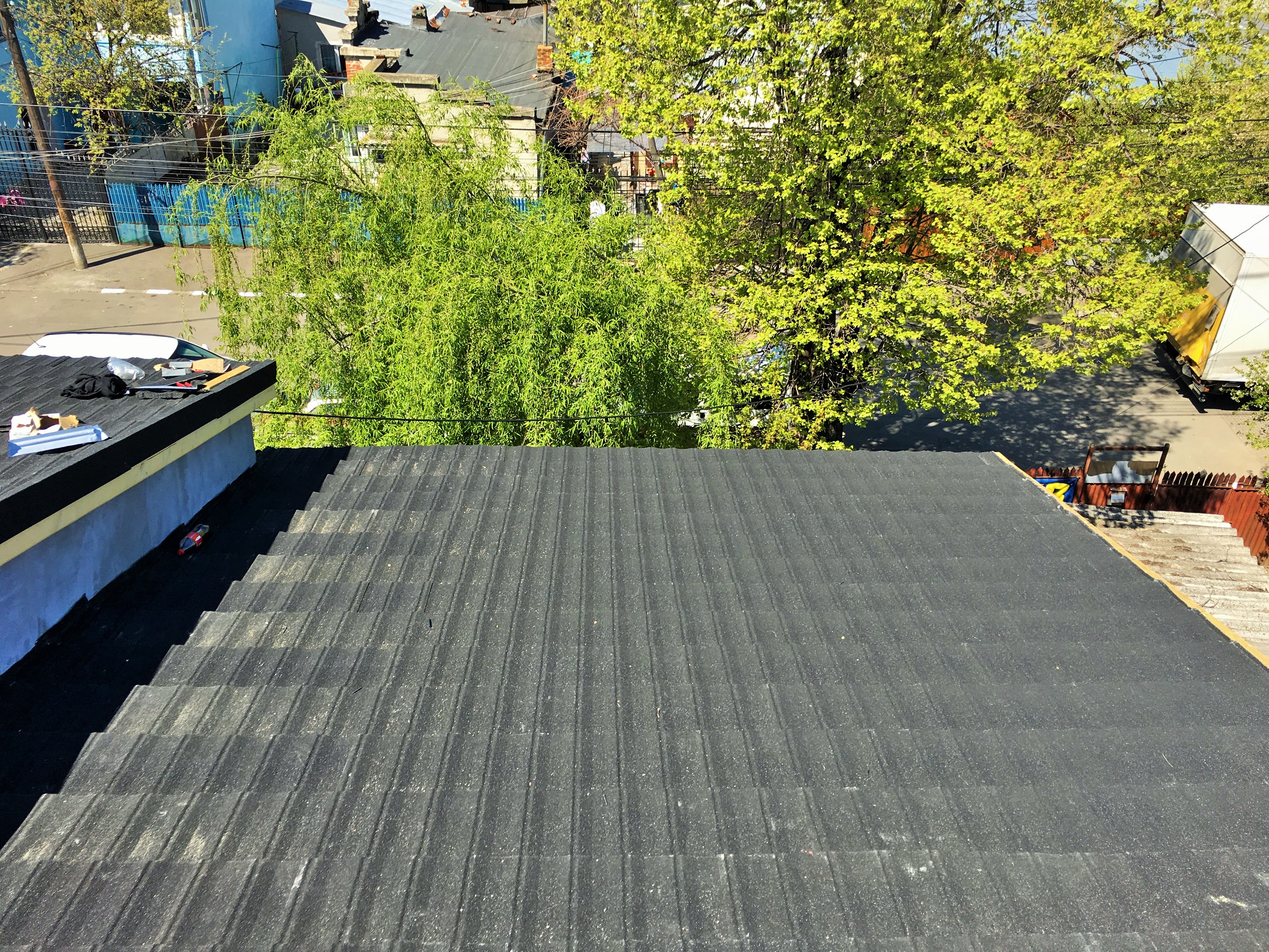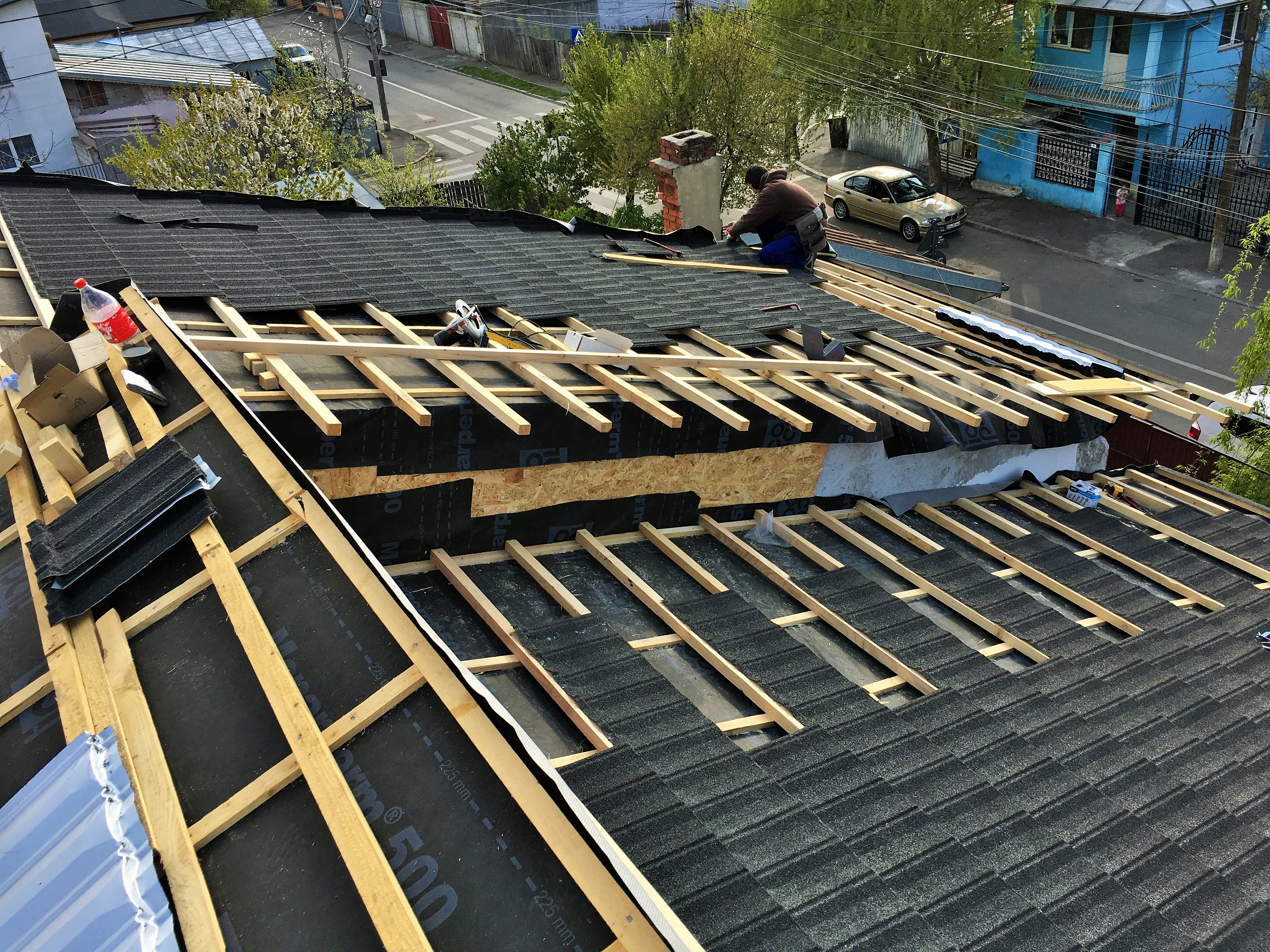 Pentru lucrarile de reparatii necesare, acest acoperis a fost desfacut pe portiuni, astfel incat sa nu fim luati prin surprindere de vreme in timpul lucrarilor. Portiunile desfacute intr-o zi au fost protejate pana seara cu folia anticondens, astfel incat sa minimalizam riscul de degradare.